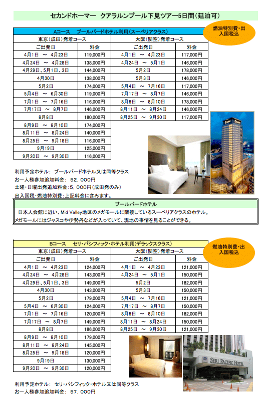 セカンドホーマー クアラルンプール下見ツアー5日間 116,000円〜